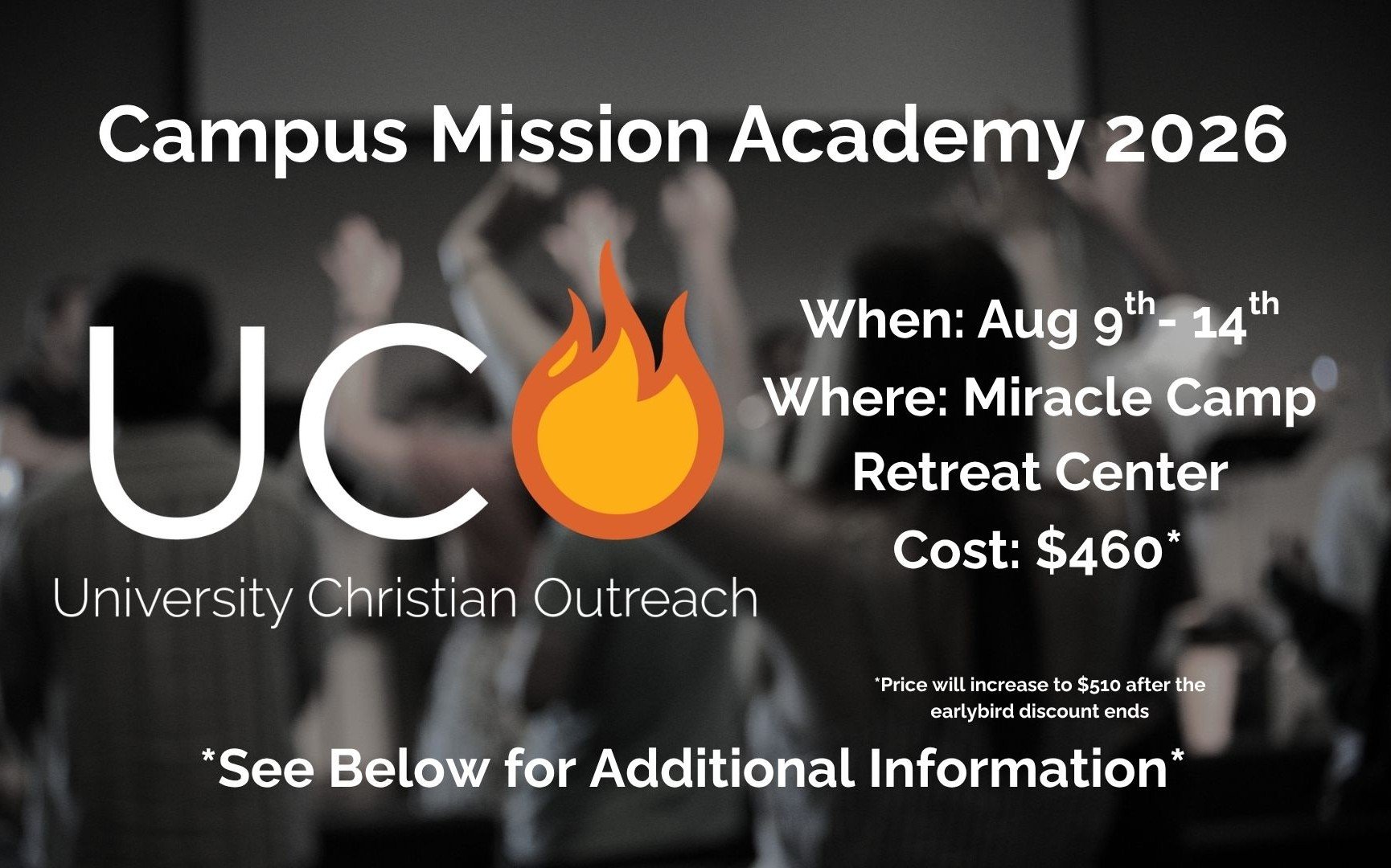 Then Campus Mission Academy is where you should be! This 6-day conference is geared towards transforming your heart, your mind, and your skills in order to live all out for His glory at your school.